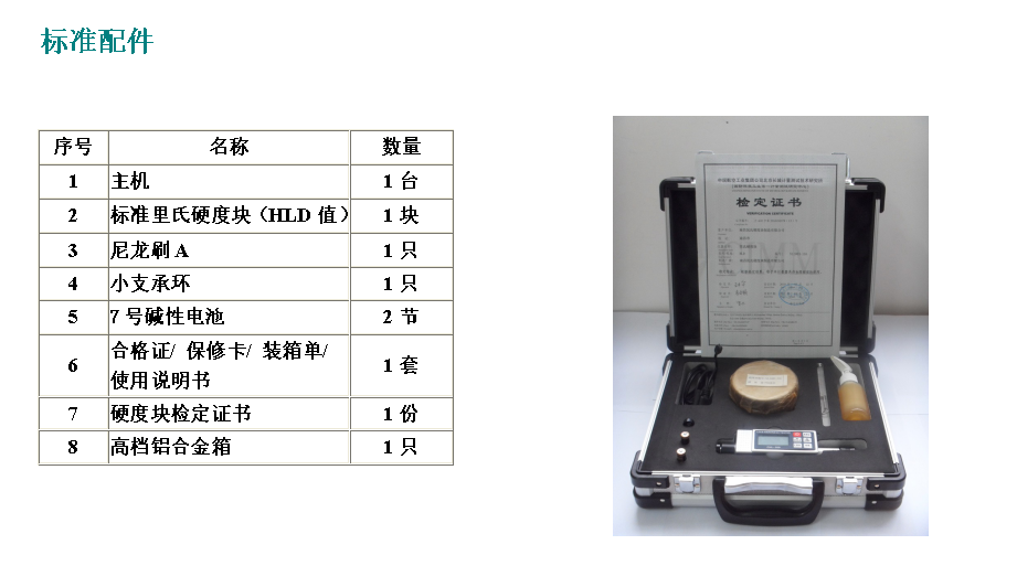 LCD背光顯示,輕松讀數(shù)高精度±4HLD(800HLD時(shí))根據(jù)沖擊方向自動(dòng)修正轉(zhuǎn)換至所有通用的硬度標(biāo)尺(HB、HV、HRB、HRC、HS、σb)?輕質(zhì)機(jī)殼,防震結(jié)實(shí)?快速檢測(cè),應(yīng)用范圍廣大容量記憶體,可經(jīng)RS-232直接下載至電腦或打印機(jī)查看數(shù)據(jù)標(biāo)準(zhǔn)AAA電池傳感器采用瑞士技術(shù),頂部瑞士進(jìn)口鎢鋼球硬度達(dá)到1900HV,遠(yuǎn)超三大標(biāo)準(zhǔn)比較高要求1600HV,磨損幾乎為零遠(yuǎn)超30萬(wàn)次疲勞試驗(yàn)保證儀器質(zhì)量與精度。